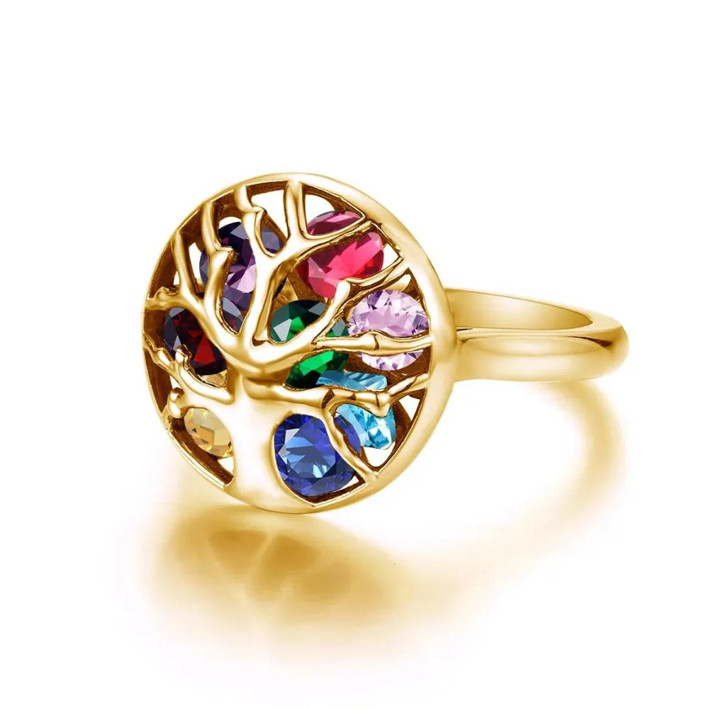 Notre bague unique est un mélange harmonieux de style et de symbolisme. Les pierres multicolores dans la creuse circulaire ajoutent une touche de couleur vibrante, tandis que l’arbre de vie, avec ses ramifications délicates, évoque la croissance, la force et la connexion à la nature.