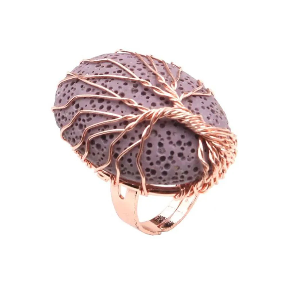 - Design Unique : Inspirée par la splendeur de la nature, chaque bague présente une pierre texturée, surmontée d’un délicat filigrane représentant l’Arbre de Vie.