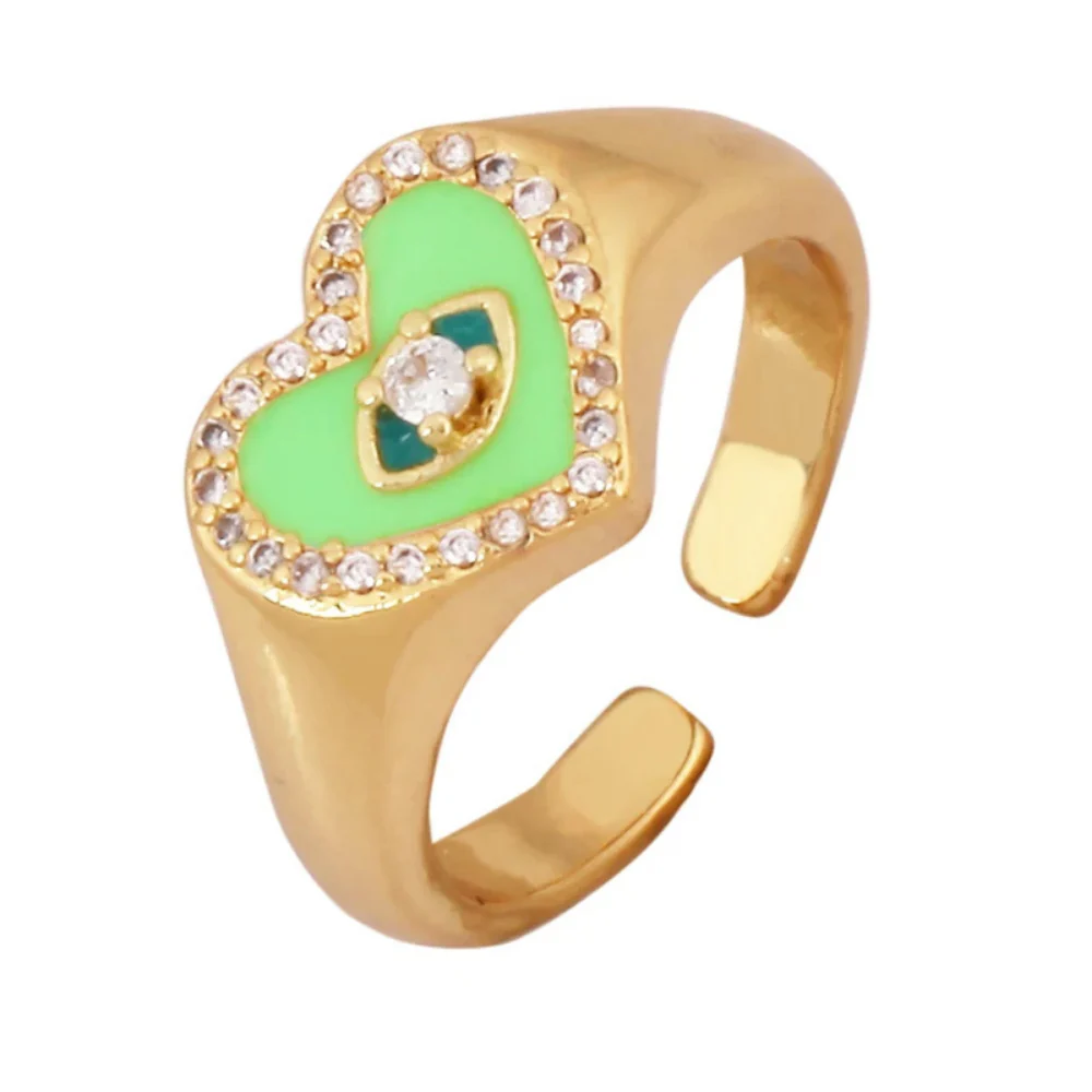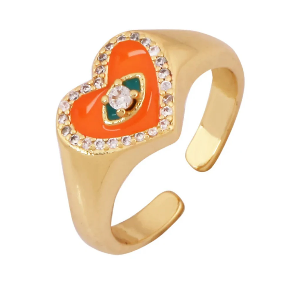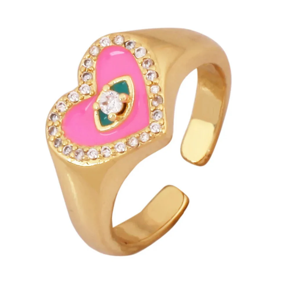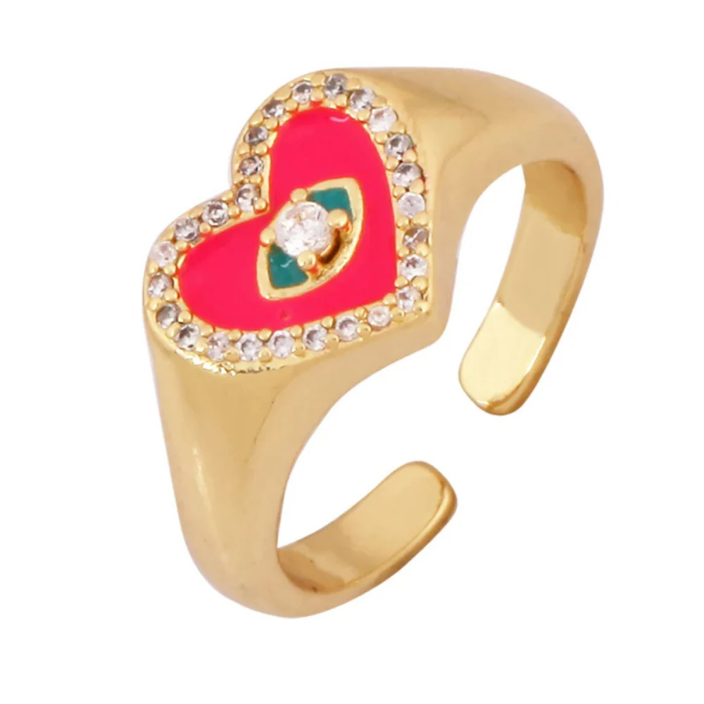 Avec notre adorable bague chevalière tendance cœur avec œil, portez la chance jusqu’au bout de vos doigts !