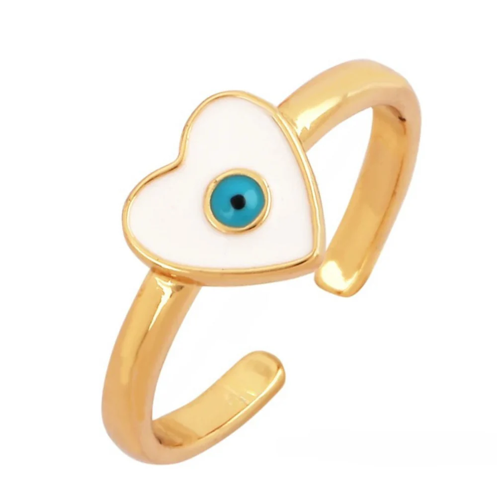 Avec notre adorable bague cœur tendance avec œil grec, portez la chance jusqu’au bout de vos doigts !