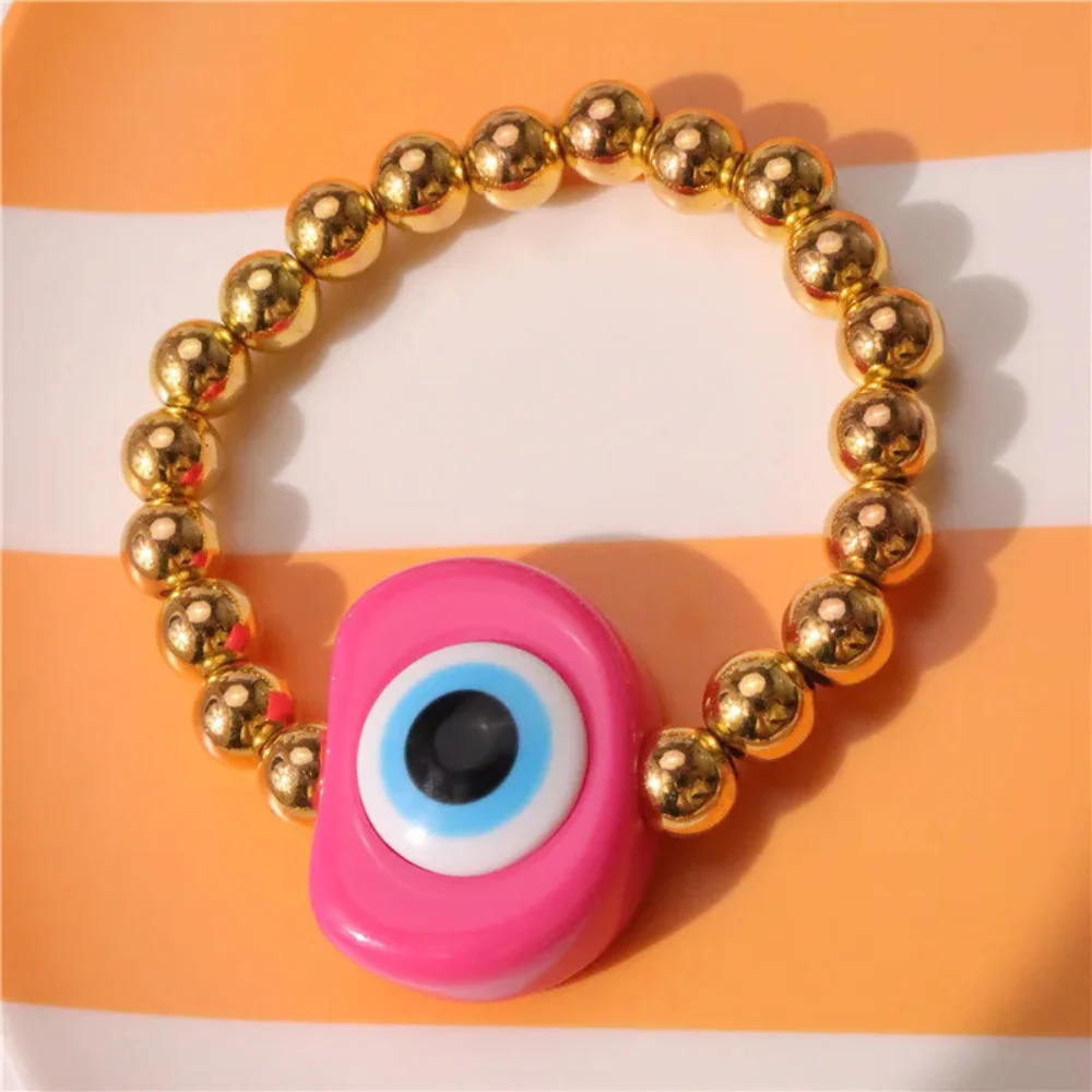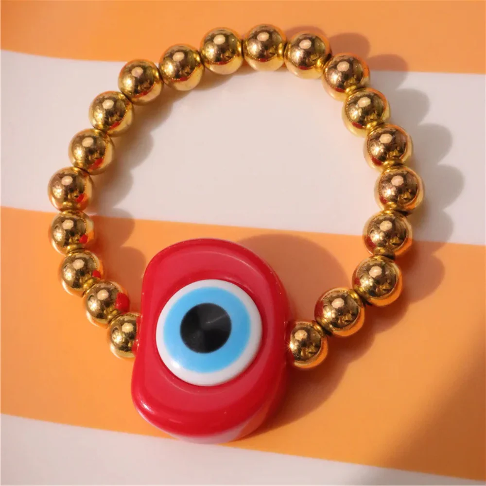 Laissez-vous tenter par notre sensationnel bracelet de perle couleur avec gros œil aux vertues protectrices. Le centre en résine, représentant l’œil emblématique, se marie avec des perles dorées brillantes. Très prisé dans la culture orientale, ce symbole est réputé pour repousser les pensées négatives et favoriser l’équilibre intérieur. Sa teinte éclatante ajoute une touche de caractère, tout en restant facile à porter au quotidien.