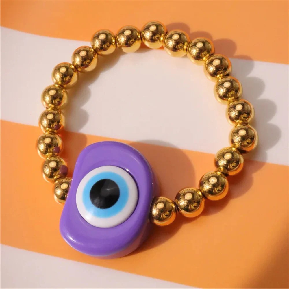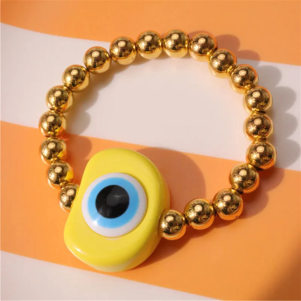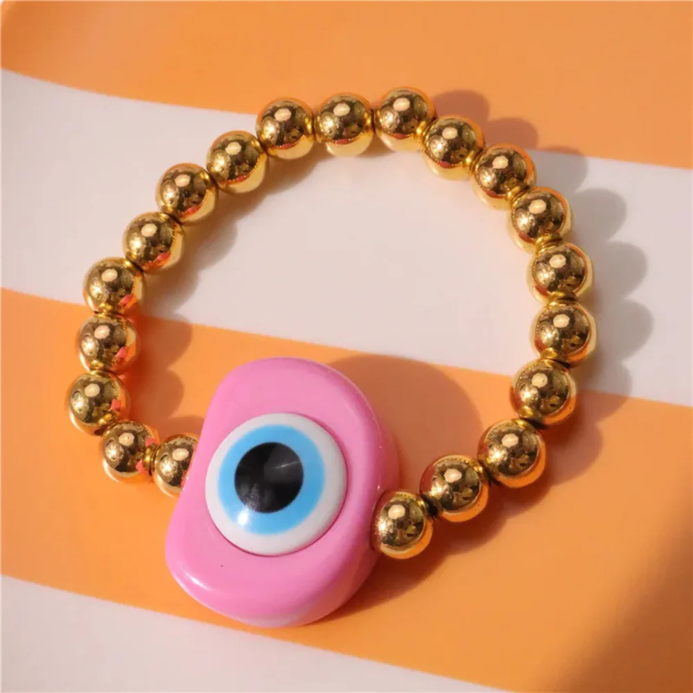 Apportez de la couleur et de la joie à votre quotidien en portant notre adorable bracelet en perles dorées avec œil protecteur !