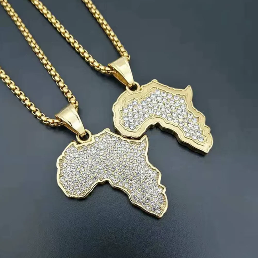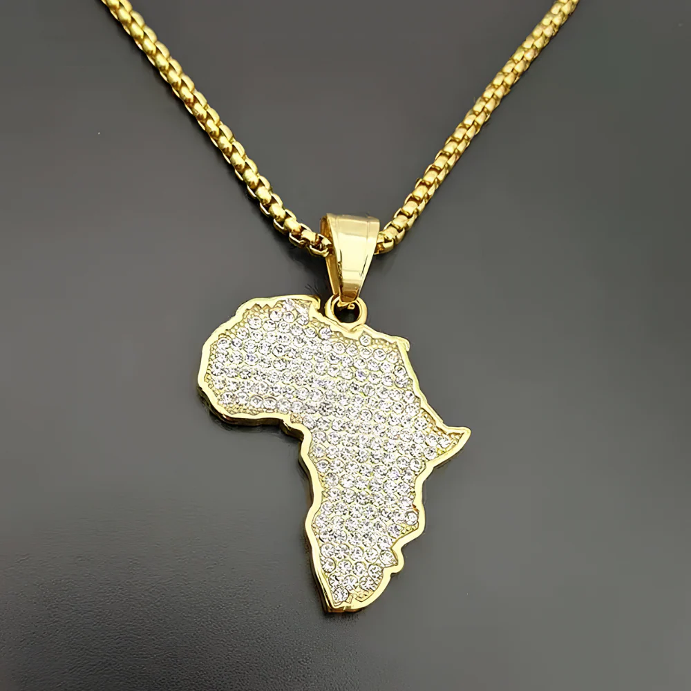 - Pendentif : Carte de l’Afrique, décorée de petits strass pour une touche glamour.