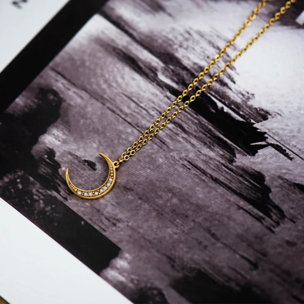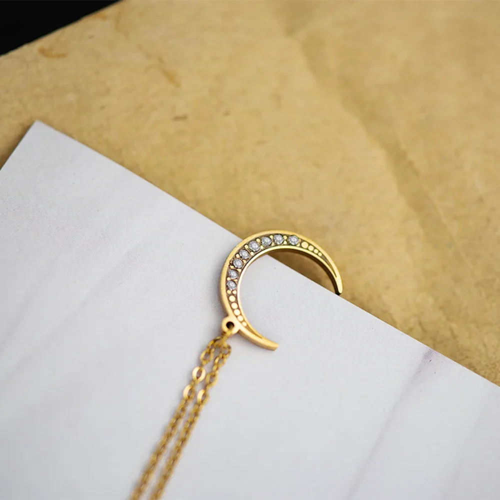 - Motif Lune : Le pendentif lune est superbe avec ses jolies pierres de synthèses.