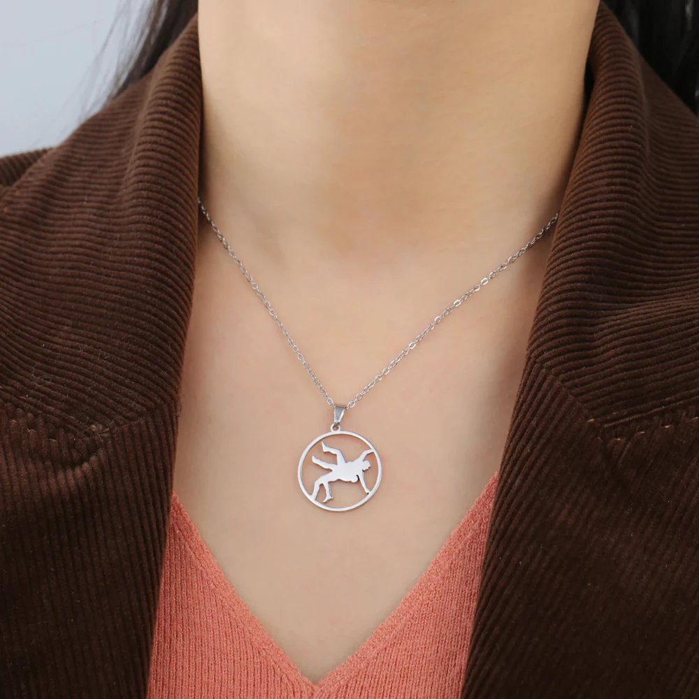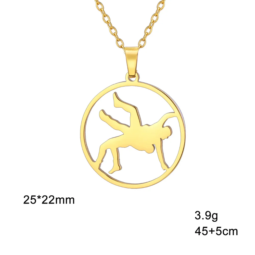 Le collier lutteur représente la force et la détermination à travers un design unique mettant en avant une prise de lutte dynamique. Fabriqué en acier inoxydable, il résiste à l’usure et à l’oxydation, garantissant une grande longévité. Disponible en deux finitions : argentée et dorée, ce pendentif est idéal pour ceux qui veulent exprimer leur passion pour la lutte ou tout simplement afficher une symbolique de combativité et de résilience.