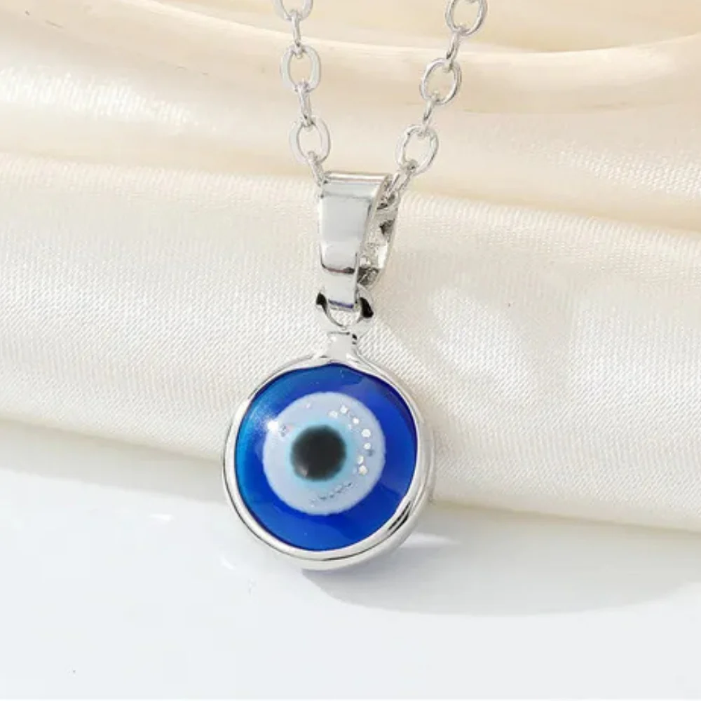 Ravissant Collier avec pendentif Œil de couleur Bleu et Argenté