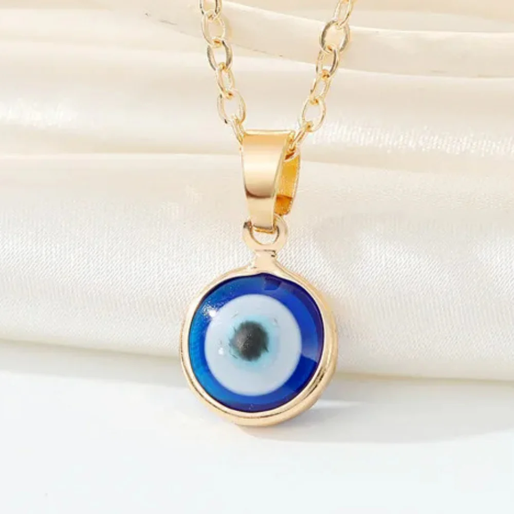 Plongez dans la tradition orientale avec notre sublime collier avec œil bleu fort en symboles. Ce modèle arbore un contour bleu foncé rehaussé d’un cerne blanc, puis d’un centre sombre. Inspiré par la tradition orientale, il symbolise la protection contre le mauvais œil. Le pendentif en résine reste solide grâce à sa confection, et la chaîne dorée ajoute une note chaleureuse. Portez-le pour favoriser positivité et équilibre.