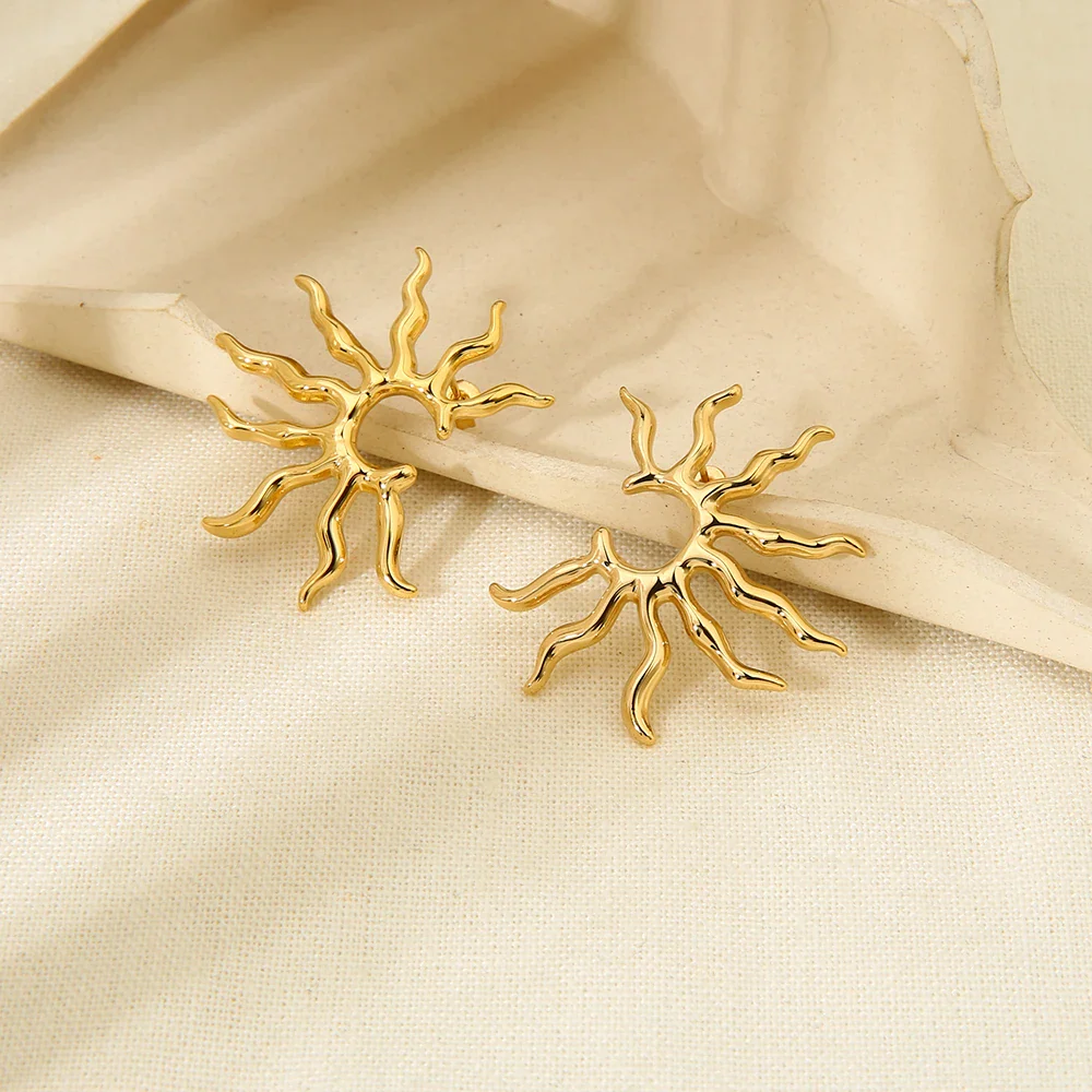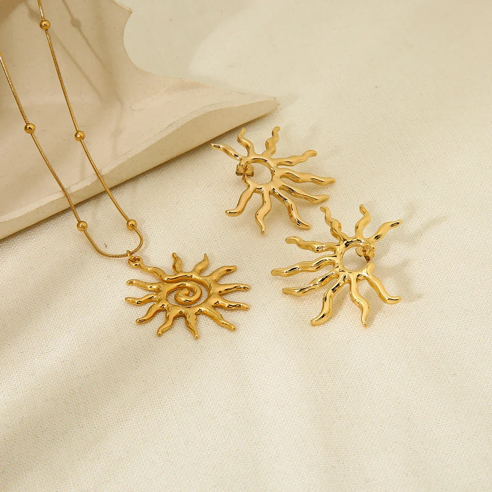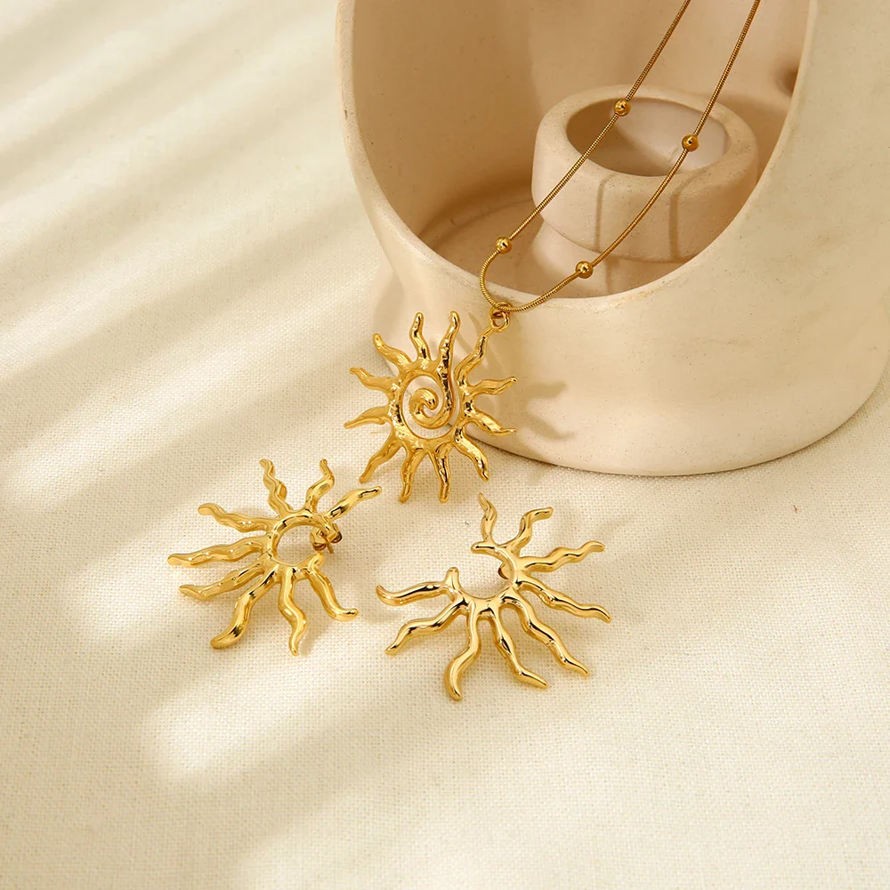 Vintage Jewelry New Arrival Stainless Steel Waterproof Hollow Irregular Sun Shaped Pendant Necklace Studs Earrings for Women