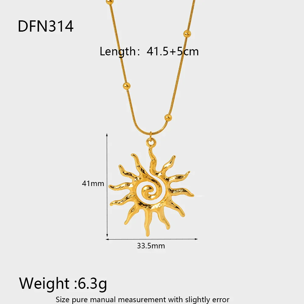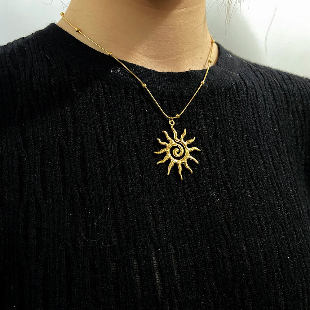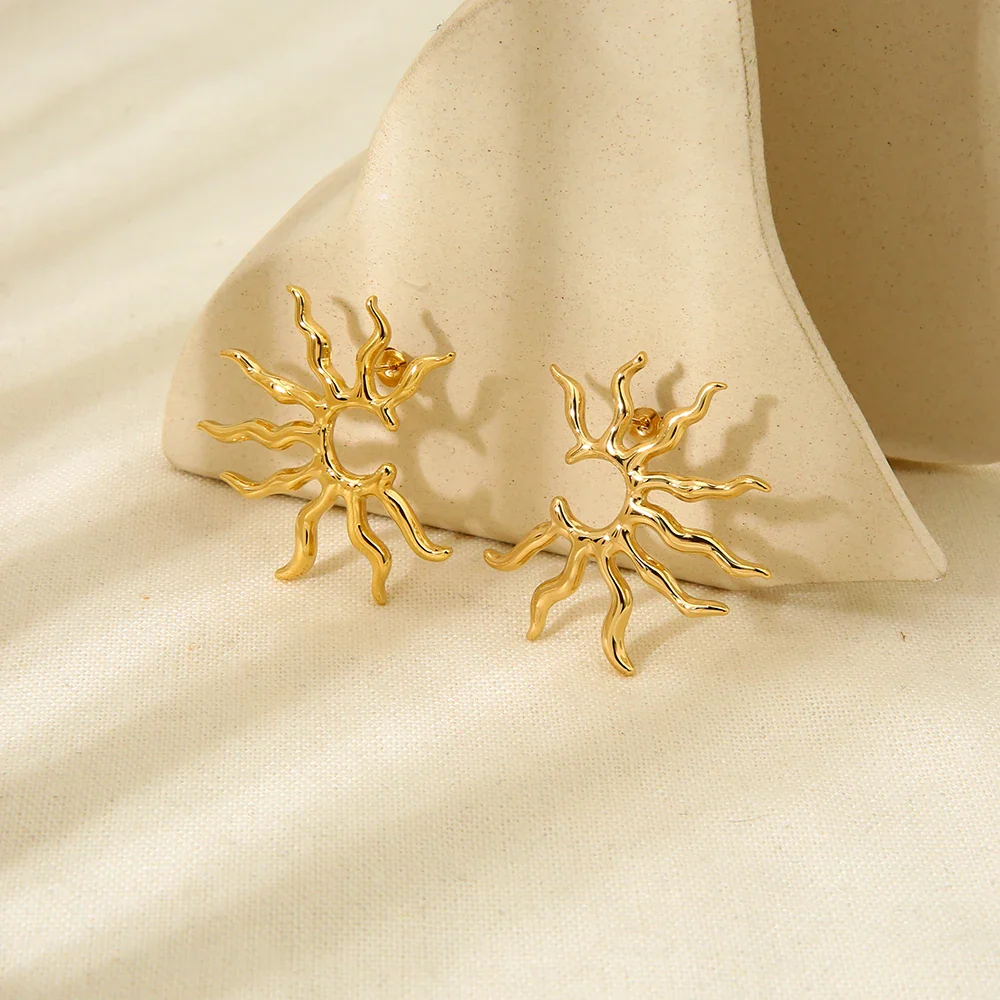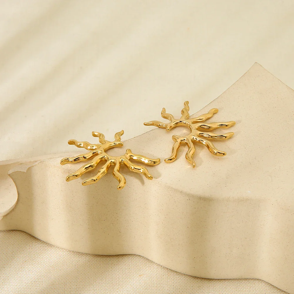 Vintage Jewelry New Arrival Stainless Steel Waterproof Hollow Irregular Sun Shaped Pendant Necklace Studs Earrings for Women